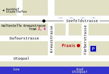 Kontakt & Wegbeschreibung Die Praxis ist bequem mit öffentlichen Verkehrsmitteln oder mit dem Auto erreichbar. Parkplätze sind gegenüber im Parkhaus Utoquai verfügbar.